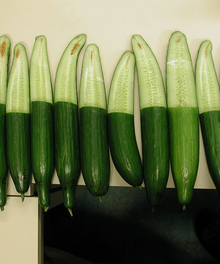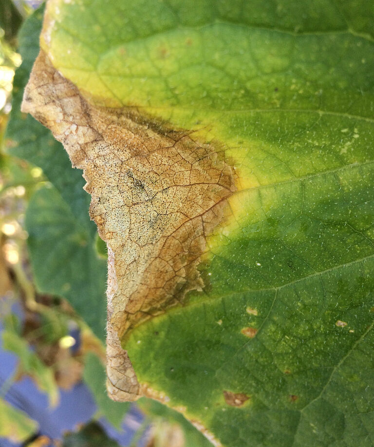 Mycosphaerella cucumis en pepino causa lesiones marrones en el pie y más arriba en el tallo. En las lesiones, aparecen gotas viscosas de color marrón dorado, de allí el nombre de chancro gomoso, En las lesiones, aparecen manchas negras, que son los nuevos cuerpos fructíferos con esporas. En las hojas pueden ocurrir lesiones redondas y extensas. En los pepinos, el síntoma más importante es la podredumbre interna del fruto, que solo se reconoce desde fuera por el pequeño estrechamiento de la punta de los frutos maduros. Los síntomas en los tallos, las hojas y el interior de los frutos pueden ocurrir conjuntamente o solo una parte.