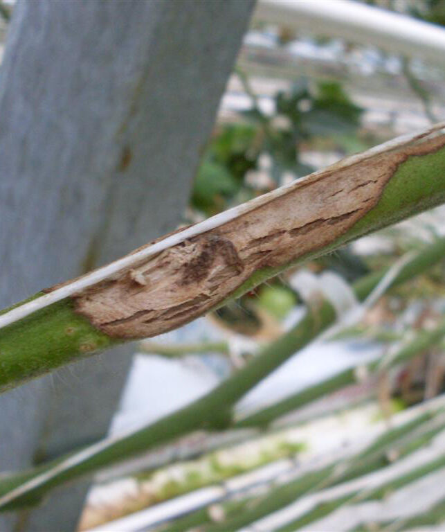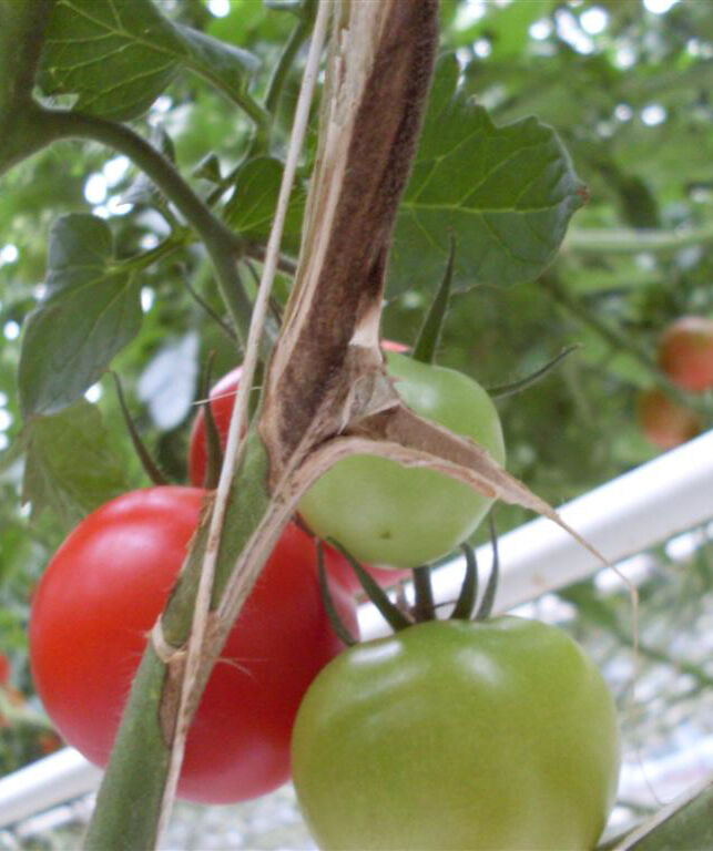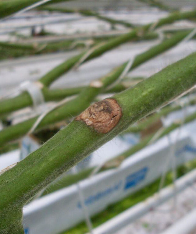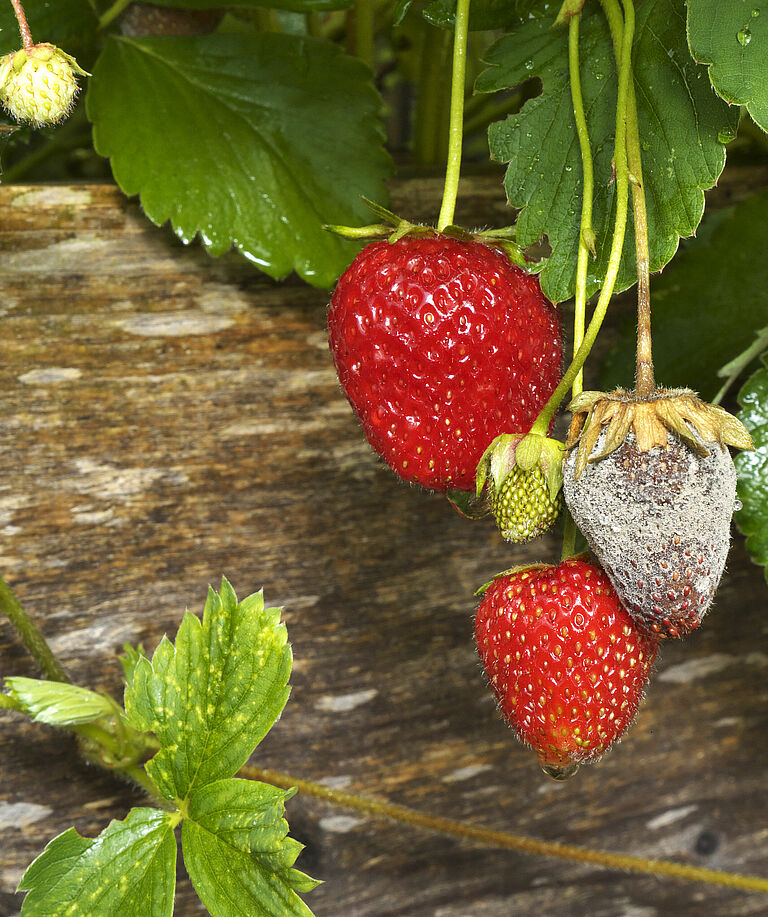 En verduras y en fresa, el moho gris (Botryotinia fuckeliana / Botrytis cinerea) afecta a los frutos. En las plantas en maceta, los esquejes se mueren debido a la infección transmitida por las plantas madres infectadas.