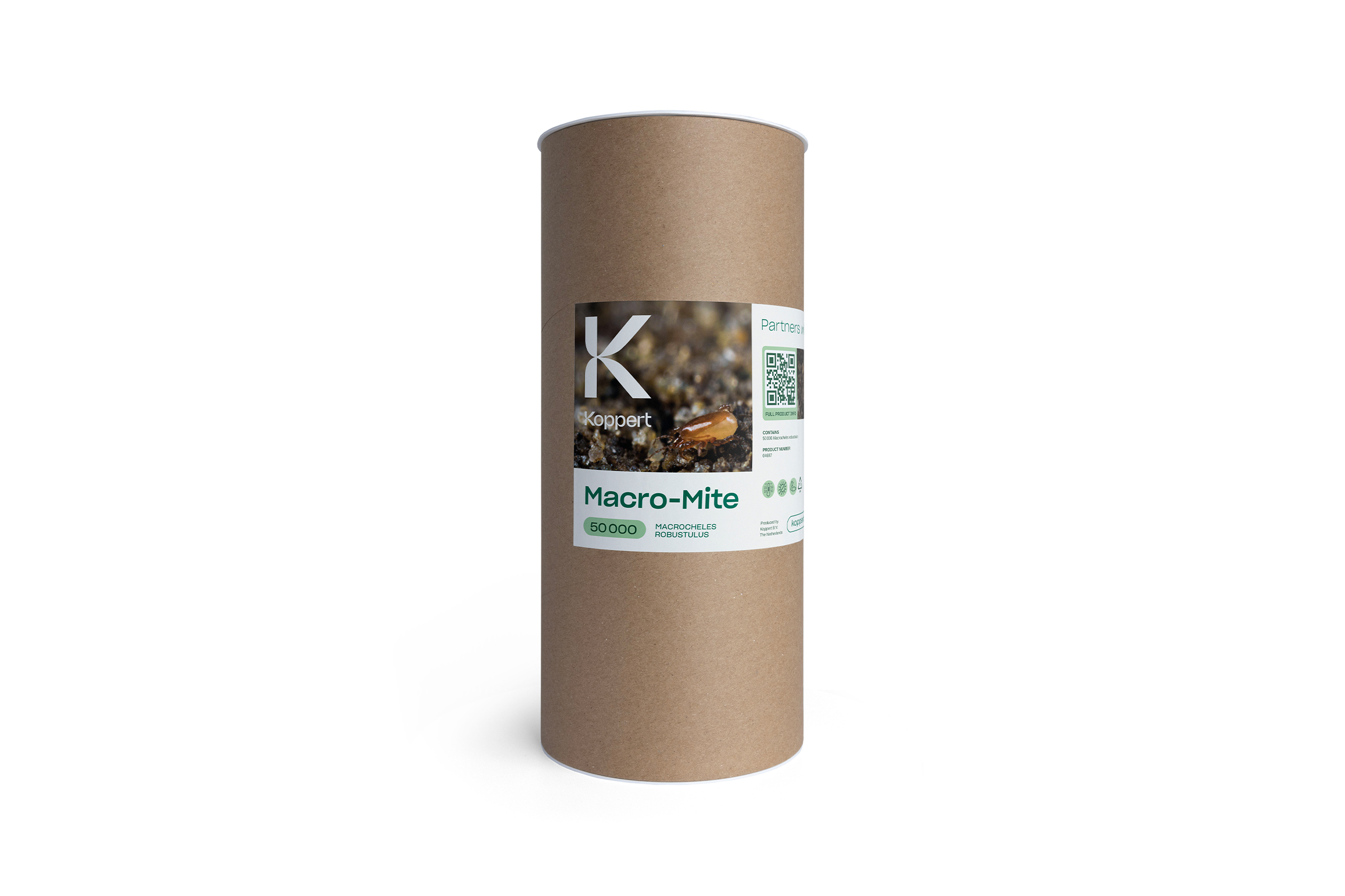 La dosis de Macro-Mite depende del clima, el cultivo, el sustrato de plantación y la densidad de la plaga y siempre se debe adaptar a la situación concreta. Empiece la introducción preventivamente o tan pronto como se detecten las primeras plagas en el cultivo. La dosis de introducción suele ser 100-500 por m2/suelta. Si desea asesoramiento sobre la mejor estrategia a seguir en su situación, consulte a un especialista de Koppert o a un distribuidor de productos Koppert autorizado.