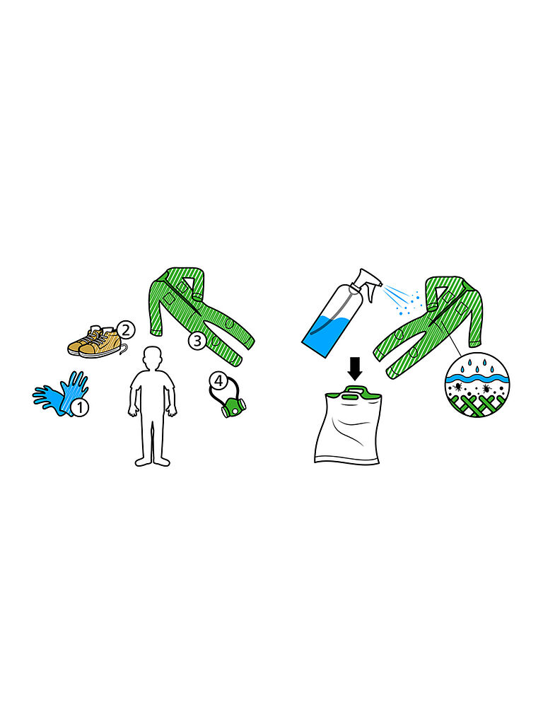 Si existe un riesgo de exposición a través de la piel, te recomendamos que uses ropa protectora que cubra sus brazos y piernas (ej. un overol desechable). También te recomendamos que cubras tus manos utilizando guantes.