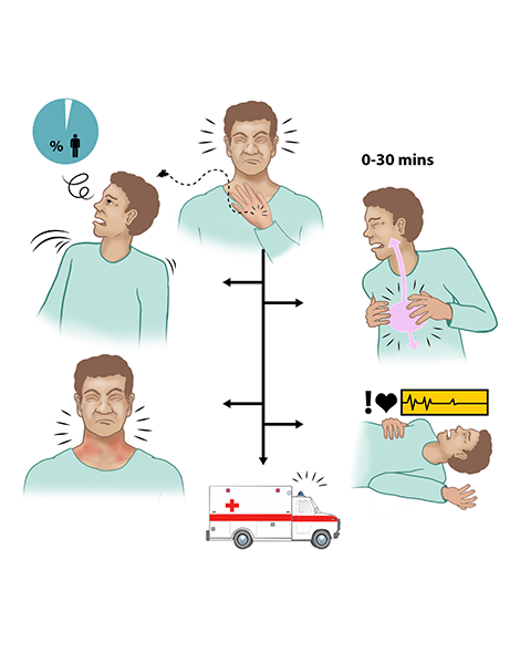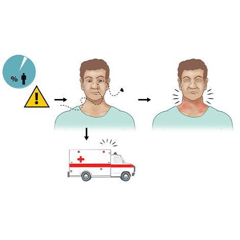 Grado 4 - grado 1 o 2 o 3, más palpitaciones del corazón, pérdida de conocimiento, choque anafiláctico (acompañado de mareos, sudoración excesiva y escalofríos)