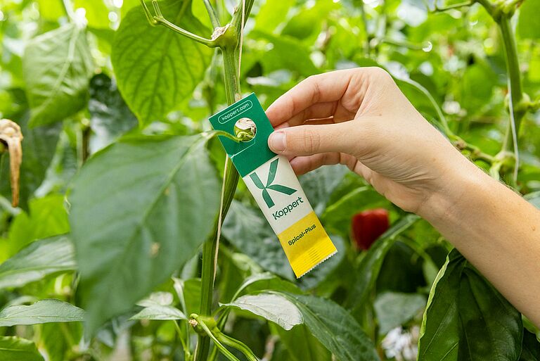 - Seleccione el ácaro depredador adecuado: Elija la especie adecuada de ácaro depredador que se alimente de la plaga identificada. Consulte con un asesor o proveedor de Koppert si no está seguro.