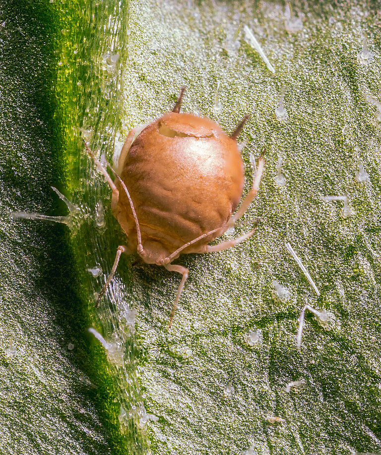 La avispa parasitaria está disponible en frasco (Aphipar).