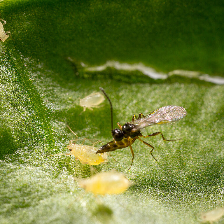 Control de pulgones con la avispa parasitaria Aphidius ervi