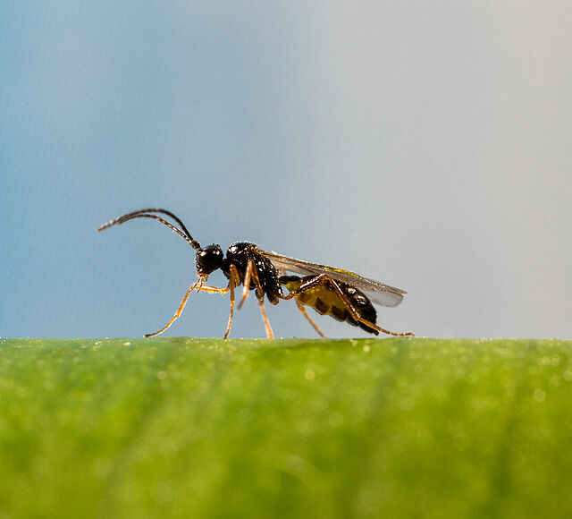 La avispa parasitaria Aphidius ervi está disponible en Koppert como Ervipar.