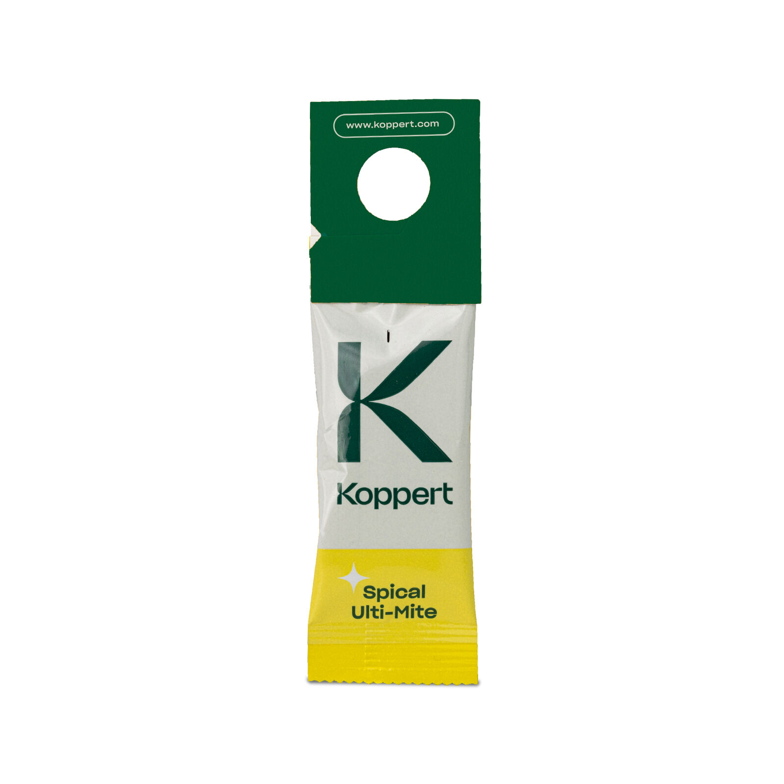 La dosis de Spical Ulti-Mite depende del clima, el cultivo y la densidad de la plaga y siempre se debe adaptar a la situación concreta. Empiece la introducción preventivamente o tan pronto como se detecten los primeros ácaros plaga en el cultivo. Use, como mínimo, 4 000 sobres por hectárea y cuélguelos repartidos uniformemente por el cultivo. Si no se logra controlar la plaga, la suelta se debería repetir tras 4-6 semanas. Si desea asesoramiento sobre la mejor estrategia a seguir en su situación, consulte a un especialista de Koppert o a un distribuidor de productos Koppert autorizado.